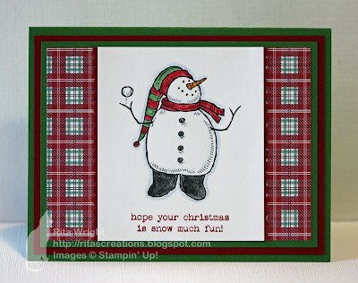 Such a fun card Rita ... this snowman image is growing on me more and more! I love the colours and the papers you have used too!